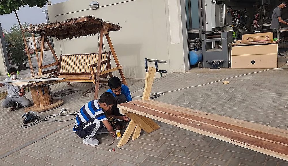 لغرس قيم “الاعتماد على الذات”: أب إماراتي يعلم أطفاله النجارة